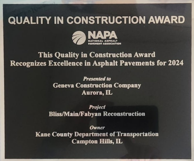 This Quality in Construction award recognizes excellence in Asphalt pavements from NAPA.