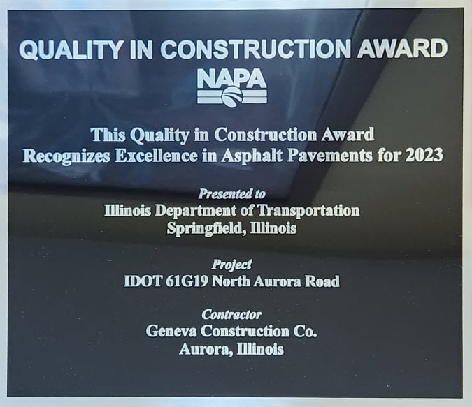 This Quality in Construction award recognizes excellence in Asphalt pavements from NAPA.